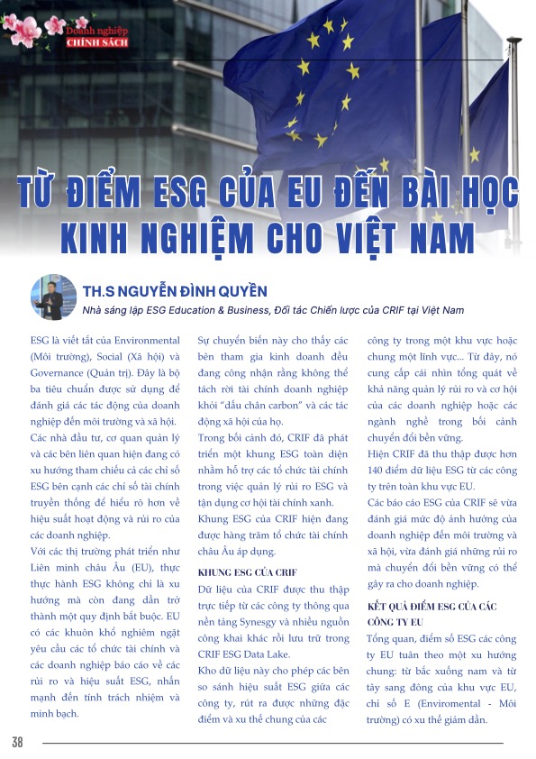 ESG Education & Business rất vui mừng và tự hào khi bài viết của chúng tôi với chủ đề “Từ Điểm ESG Của EU Đến Bài Học Kinh Nghiệm Cho Việt Nam”