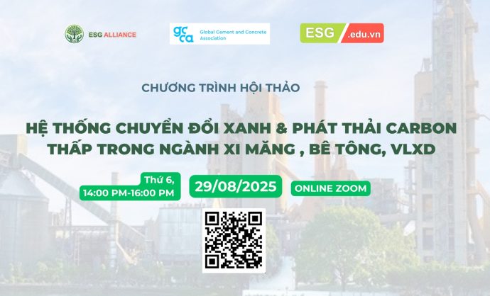 Link đăng ký : https://esg.edu.vn/hoi-thao-he-thong-chuyen-doi-xanh-trong-nganh-xi-mang-be-tong-va-vat-lieu-xay-dung/