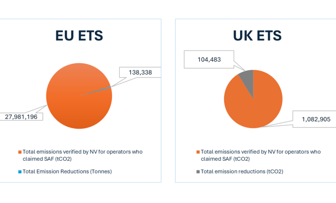 Trong giai đoạn giám sát năm 2024, Normec Verifavia (NV) đã xác minh tổng cộng 45,7 triệu tấn khí thải CO₂ được báo cáo bởi 139 nhà khai thác theo ETS của EU và ETS của Vương quốc Anh. Một bước phát triển quan trọng trong năm nay là việc giới thiệu Điều 53a của Quy định Giám sát và Báo cáo (MRR) theo ETS của EU, nhằm phân bổ chính xác hơn các khoản giảm phát thải từ việc sử dụng Nhiên liệu Hàng không Bền vững (SAF). Hầu hết SAF được tuyên bố theo ETS của EU đến từ dầu ăn đã qua sử dụng (UCO) và mỡ động vật, trong khi ở ETS của Anh, UCO là nguyên liệu duy nhất. Sự phụ thuộc liên tục vào SAF dựa trên chất thải làm nổi bật cả sự trưởng thành và tầm quan trọng ngày càng tăng của nhiên liệu bền vững trong hành trình khử cacbon của hàng không.