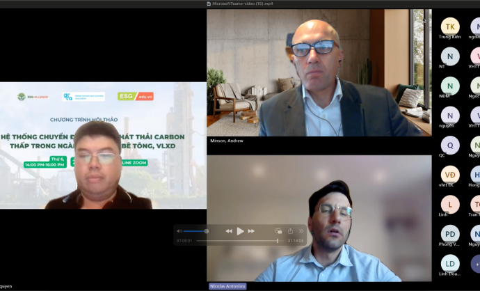 Hội thảo trực tuyến do Hiệp hội Xi măng và Bê tông Toàn cầu (GCCA) phối hợp với các chuyên gia tư vấn ESG tại Việt Nam đã diễn ra thành công, với sự tham dự của nhiều lãnh đạo, chuyên gia và doanh nghiệp trong lĩnh vực vật liệu xây dựng.